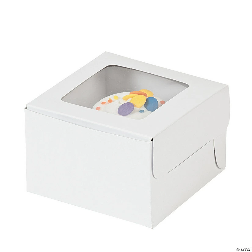 Leave a tasty treat for your family and friends! These cupcake boxes include a cellophane window and insert so you can see the confection inside without opening. Great for giving dessert on the go at wedding receptions, parties, banquets or bake sales. Cardstock. 4 1/2″ x 4 1/2″ x 3″ Simple assembly required.