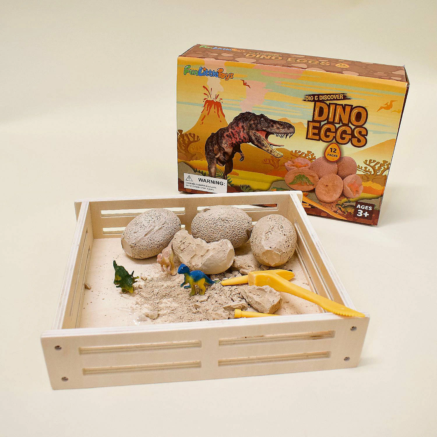 It’s time for Dinosaur Egg Hunt! Here are tips for using these wonderful dinosaur science kits. Place a table cover on the bottom before star digging dino egg, preventing gypsum powder from scattered around during excavation. Soak the dinosaur eggs in water to soften, which will make digging easier. During the excavation process, please operate carefully and enjoy the fun of archaeological excavation. Use a brush to clean the clay once dinosaurs excavated; rinse off the dinosaur with clean water, and wipe dry.